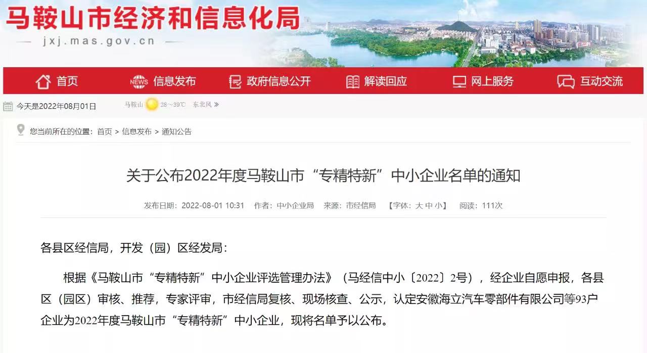 2022年度馬鞍山市“專精特新”中小企業(yè)名單