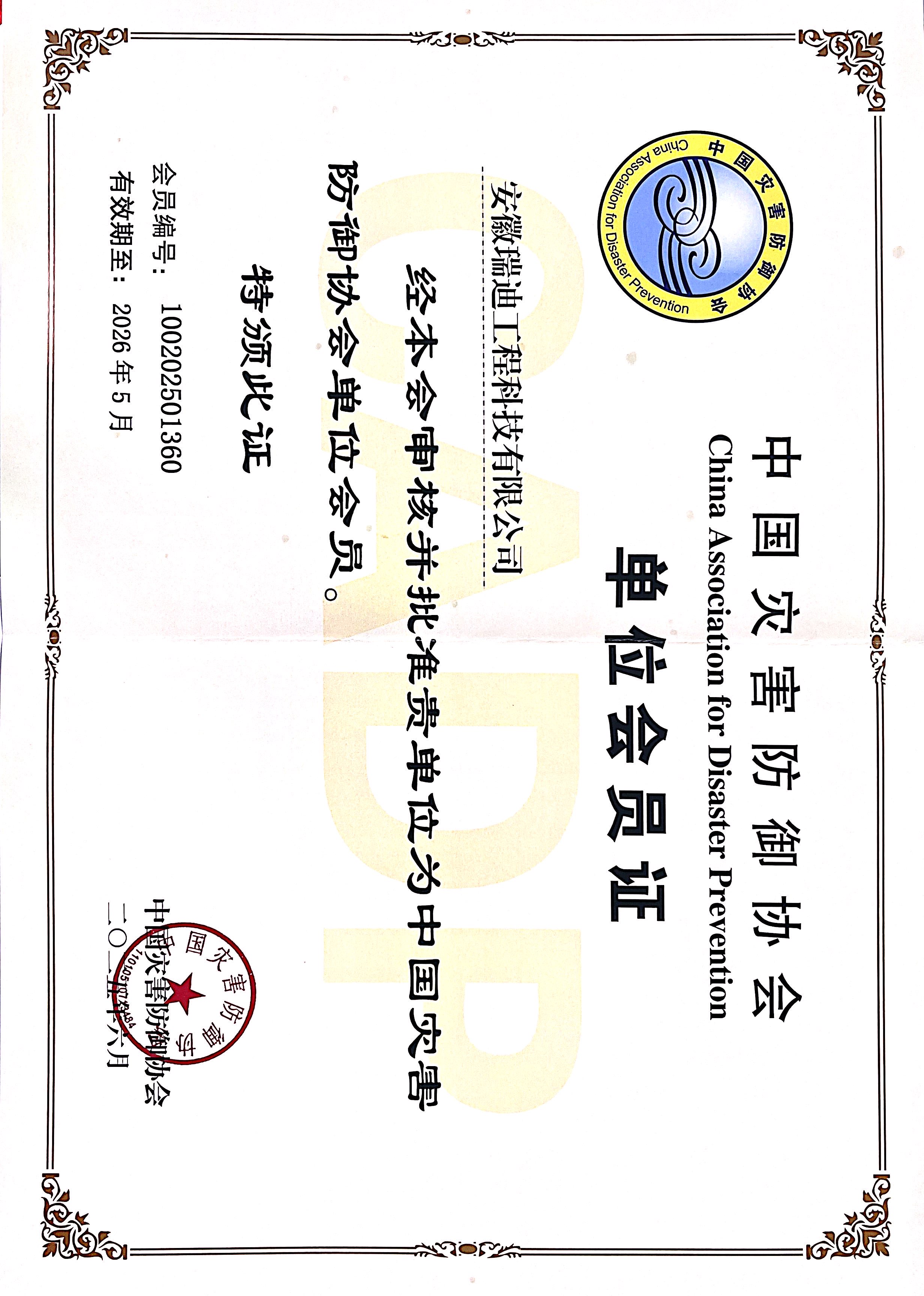 近日,經(jīng)中國災(zāi)害防御協(xié)會嚴(yán)格審核與批準(zhǔn),安徽瑞迪工程科技有限公司正式成為中國災(zāi)害防御協(xié)會會員單位。